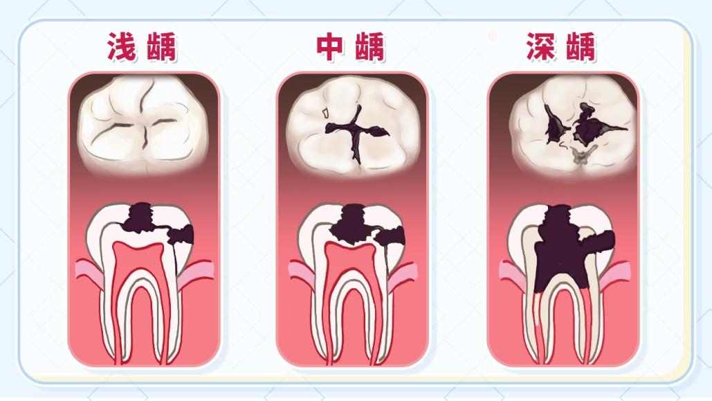 在临床上,龋齿主要分为浅龋、中龋和深龋三种类型。