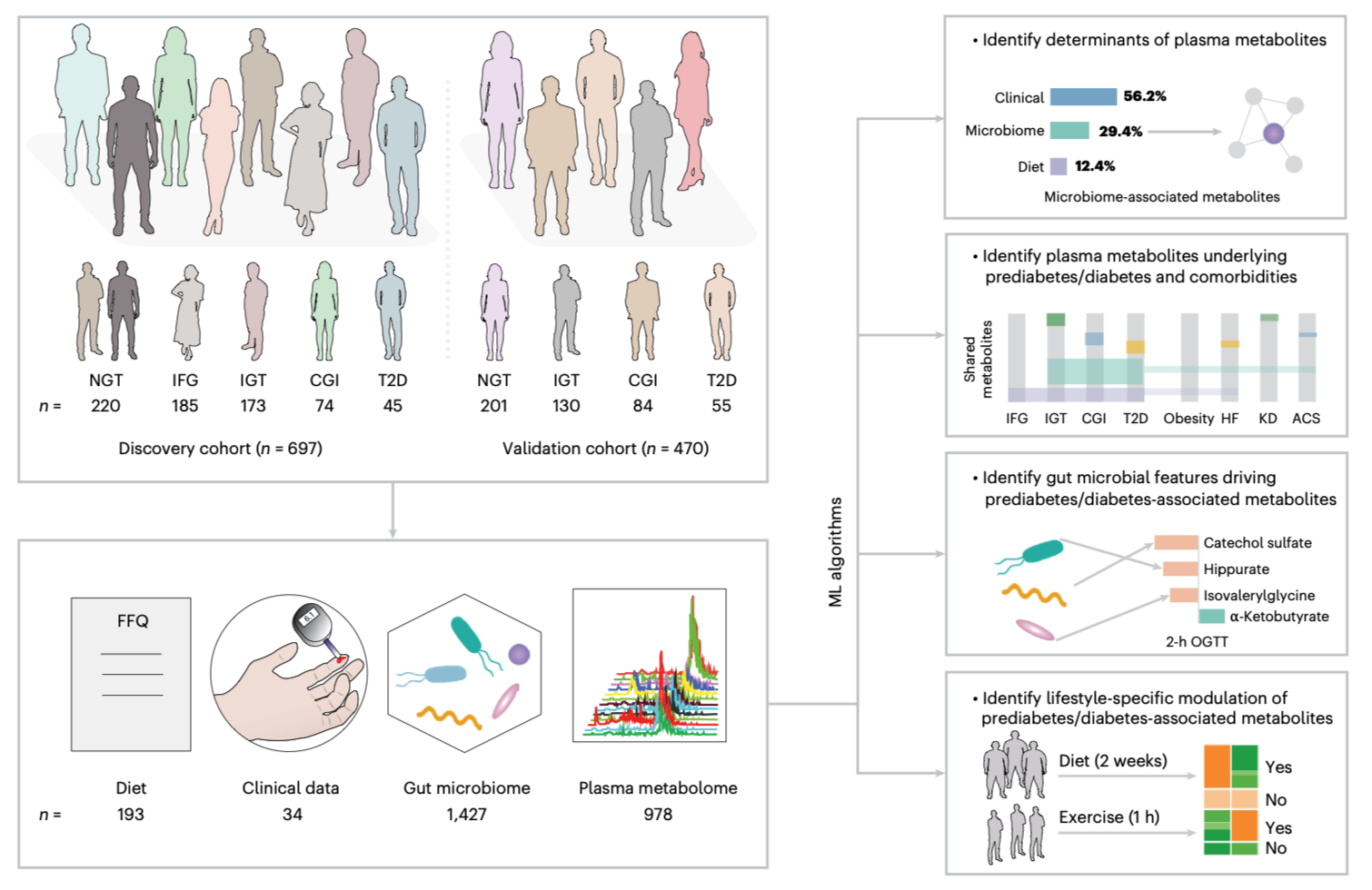 图1|肠道菌群、血液代谢物与血糖控制状态的综合分析框架