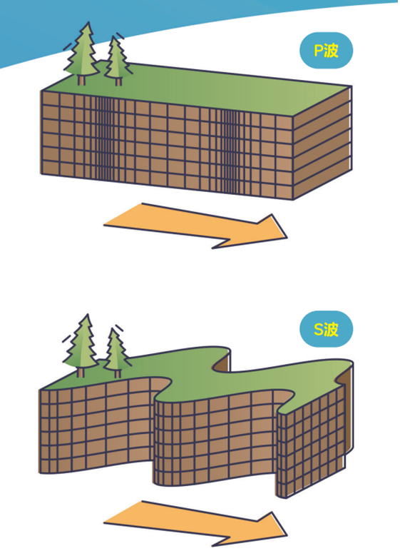 面波不是从震源发出的,而是由纵波与横波在地表相遇后激发产生的混合波,主要在地表传播,不能传入地下,但其波长大、振幅大,传播速度比横波小,在远离震中的地方也会造成较大的破坏,主要表现为地面的滚动和摇摆。