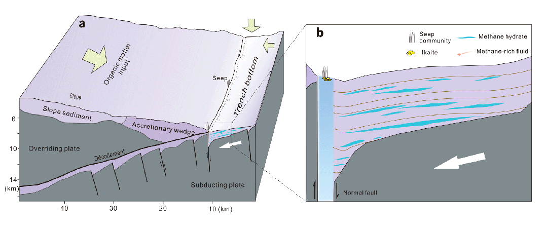 该研究对理解地球深部碳循环具有深远意义。通过地球化学分析,研究人员发现这些环境中的甲烷实际上是由沉积层深处的微生物活动产生的。这一结果表明,在深渊海底之下还存在着一个前所未知的、庞大活跃的深部生物圈,不断将由沉降有机质分解而来的二氧化碳转化为甲烷。因此,这一过程可能封存了大量的从上层海洋沉降的有机碳,并以天然气水合物等形式在深渊海底形成规模巨大的甲烷储库,挑战了传统的深海碳循环和碳收支模式。