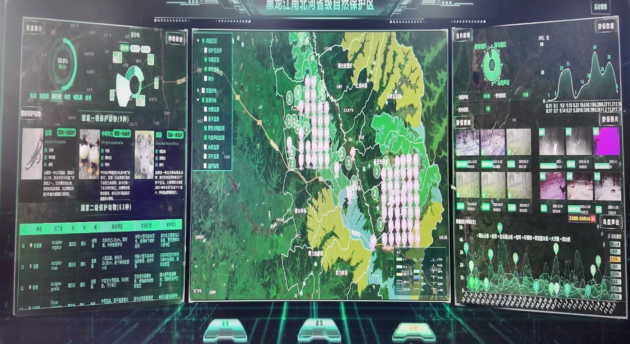 科技赋能让管护更精准高效。林间鸟类声纹识别系统,24小时不间断采集鸟类鸣叫声音数据,结合声纹特征提取算法与深度学习模型,能够精准识别出百余种鸟类物种。集成化调度指挥中心实现全要素数据可视化,推动治理从“被动应对”“粗放管理”转向“主动防控”“精准施策”。