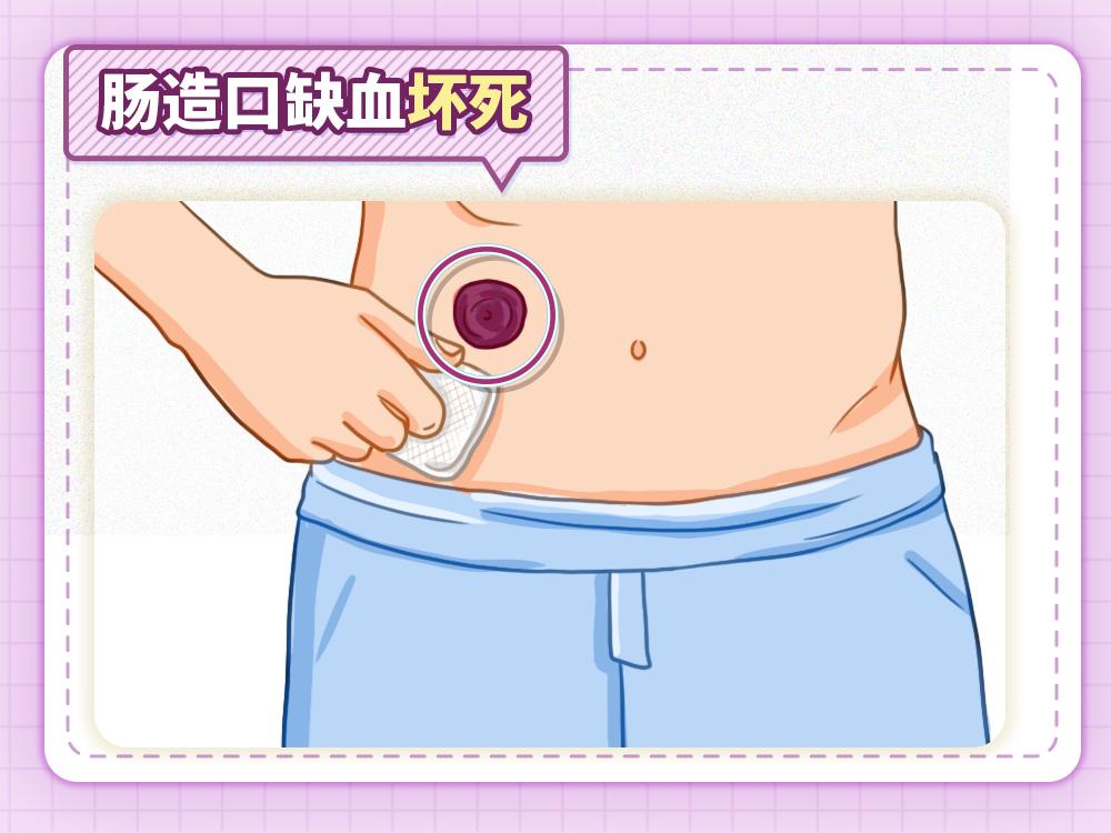 处理方法:若肠管内部的血液循环未受影响,只是造口表面出现缺血/坏死,排除异物或缝线等物品压迫造口的原因,最重要的是做好保护并持续观察造口的变化就行,一般会局部萎缩后慢慢愈合。若缺血/坏死位置较深,往往需要医生介入,评估是否要重新做造口。