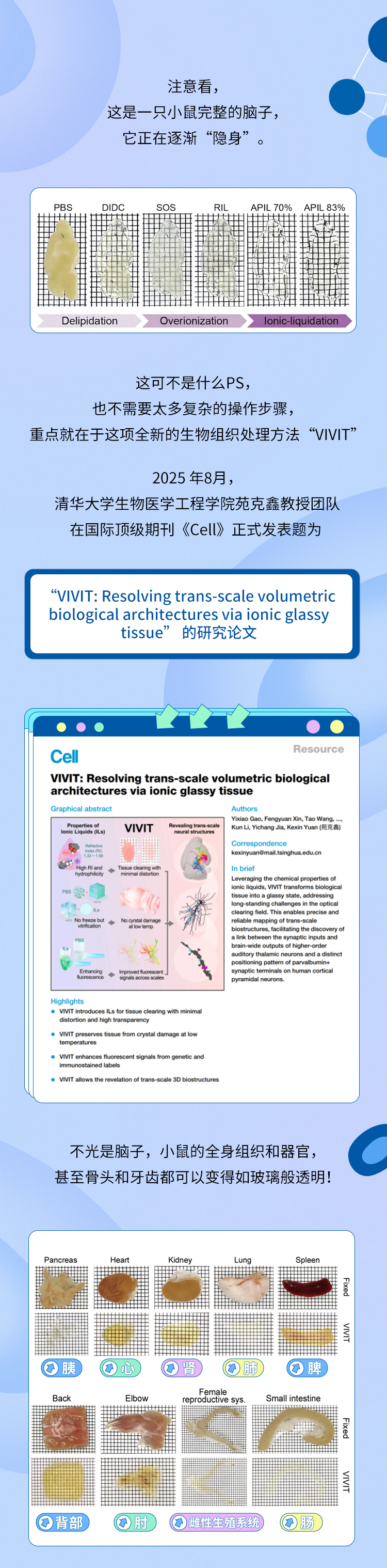 图文简介: 传统切片看局部?我们直接给你“全景3D”!清华苑克鑫团队突破性 VIVIT技术,从大脑到全身,黑科技让所有器官原样“一键”变透明。