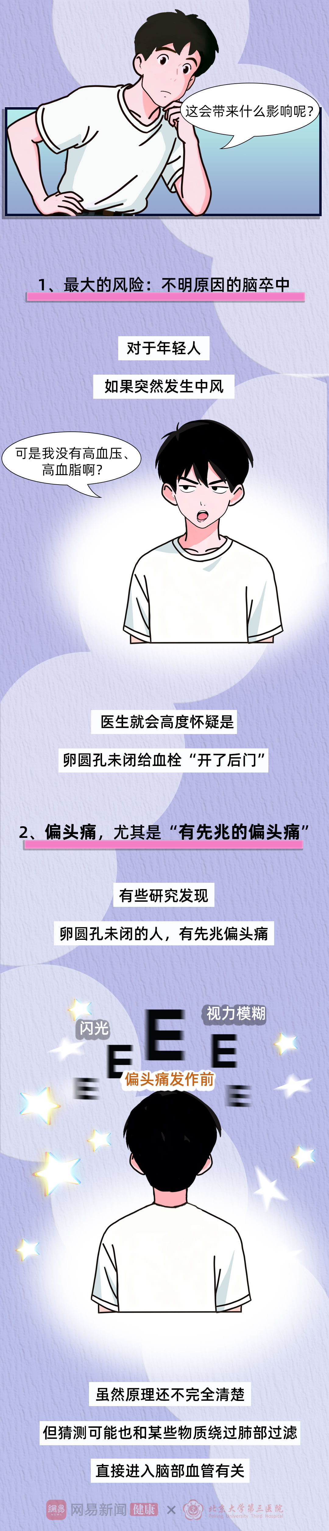 卵圆孔未闭 (PFO)不属于传统意义上的结构性心脏病(如房缺、室缺),它不引起心脏负荷增加,也不会导致心力衰竭。绝大多数PFO是在因其他原因,如脑卒中、偏头痛、体检做心脏超声时被偶然发现的。因此,发现卵圆孔未闭不必过度恐慌,但需要由医生评估它与临床症状的关联性。