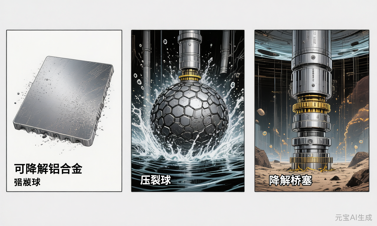 随着非常规油气田开采技术的迭代进步,可降解金属在油气田开采装备中的使用包括但不限于压裂球、桥塞、球座、油管用螺钉、卡瓦配件和射孔枪等。