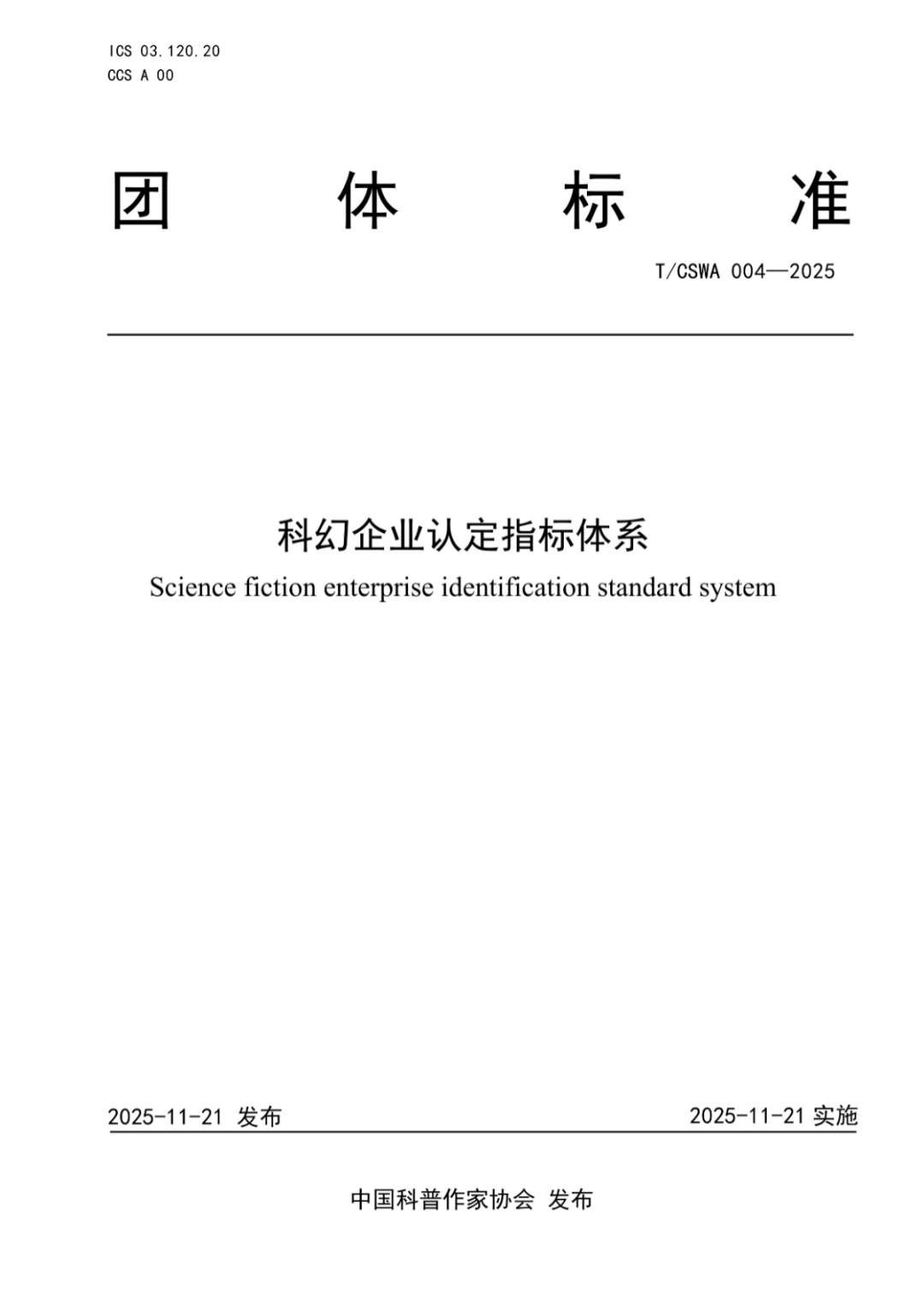 11月21日,中国科普作家协会在2025年全国科普创作大会上发布《科普图书评定指标体系》和《科幻企业认定指标体系》2项标准。