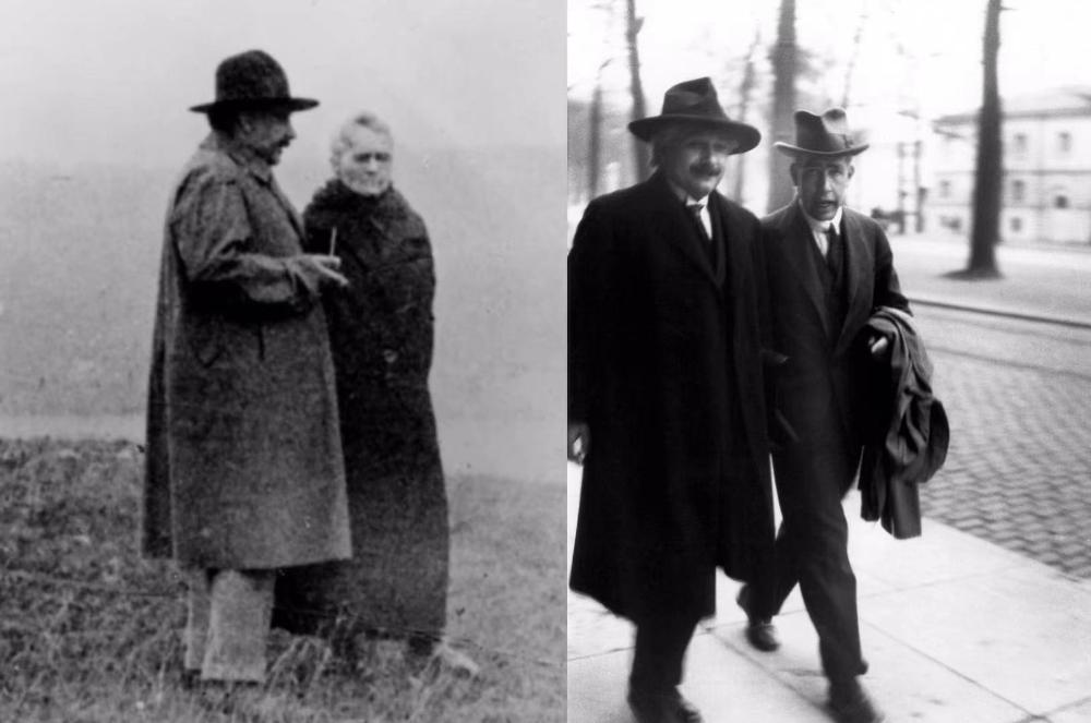 图6 爱因斯坦分别与玛丽·居里(1929年)、玻尔(1930年索尔维会议)