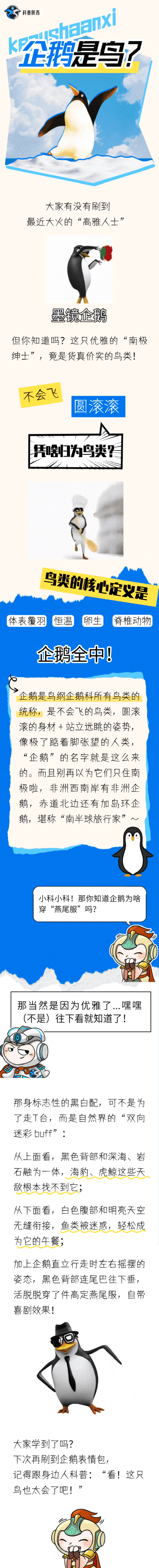 图文简介: 谁能想到,刷屏表情包的南极“高雅绅士”,竟是被误会多年的“鸟类选手”?不会飞、圆滚滚的外形,让很多人忽略了它的鸟类本质。