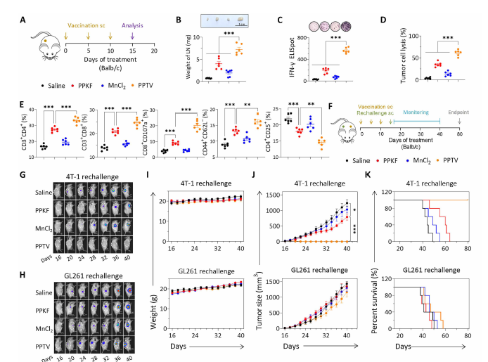 当小鼠被重新注入相同肿瘤细胞后,接种 PPTV 的小鼠几乎不会再次长出肿瘤。这表明 PPTV 建立了持久“免疫记忆”。