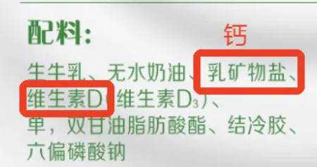 强化了钙和VD的牛奶配料表(图源:电商平台)