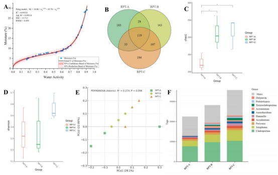 Objectives: This study aims to elucidate the mechanisms by which different Aw levels shape microbial communities and drive flavor compound formation during RPT storage.
