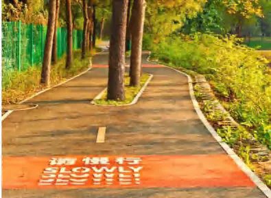 被围墙分割的东坝公园和京城槐园在绿道建设后成为一个互通完整的4000亩公园板块。绿道6.5公里特色骑行路线独立成环,营造了连续、完整、畅通的森林纯净骑行环境。
