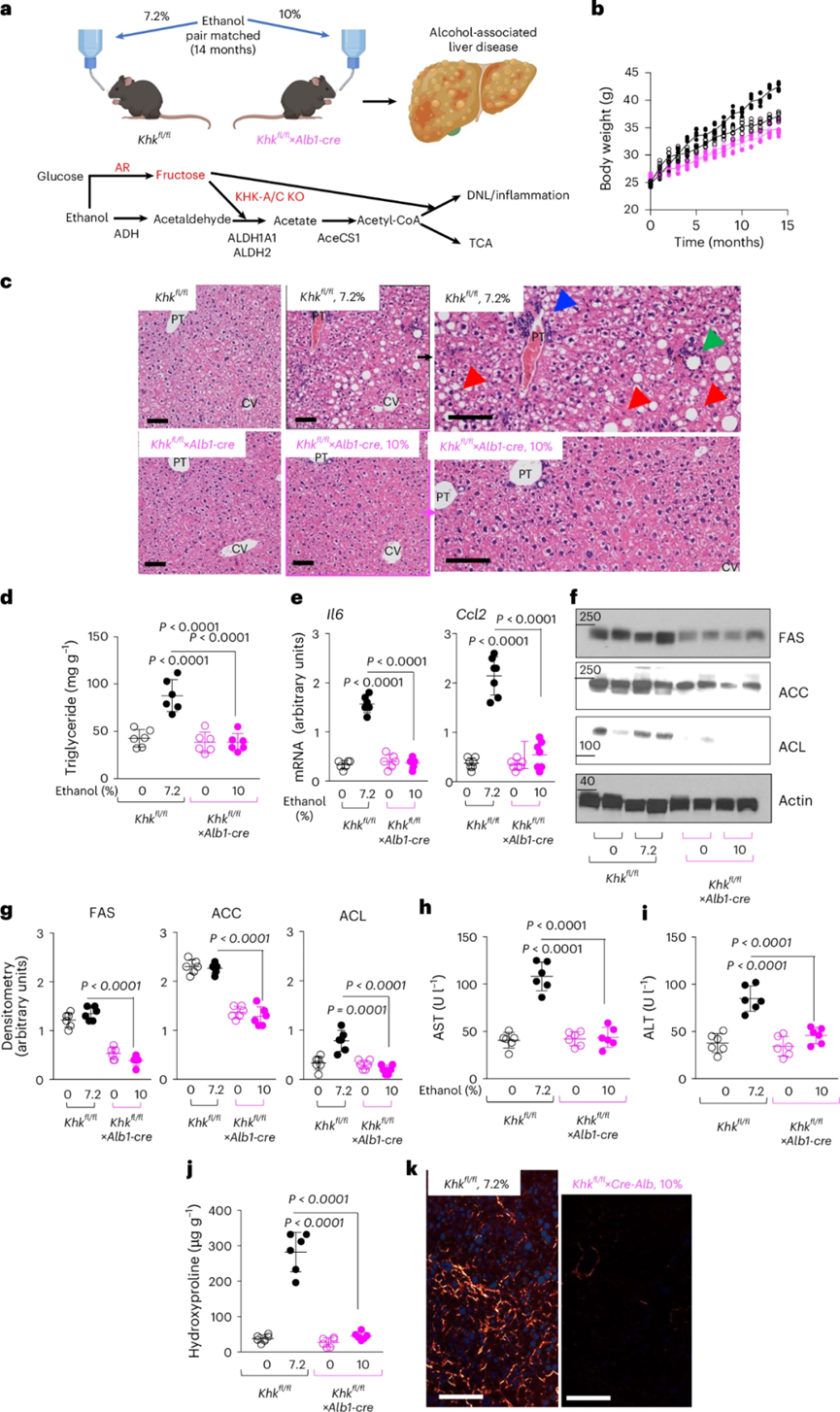 这揭示了一个全新的代谢路径:酒精→内源性果糖生成→KHK催化→F1P水平升高。也就是说,喝酒本身,就在肝脏里制造了“果糖代谢”的环境,而这一切都依赖于KHK这个开关。
