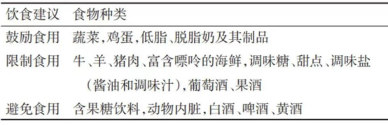 禁饮啤酒、黄酒和烈酒。酒精会促进嘌呤代谢为尿酸、并抑制尿酸排泄。