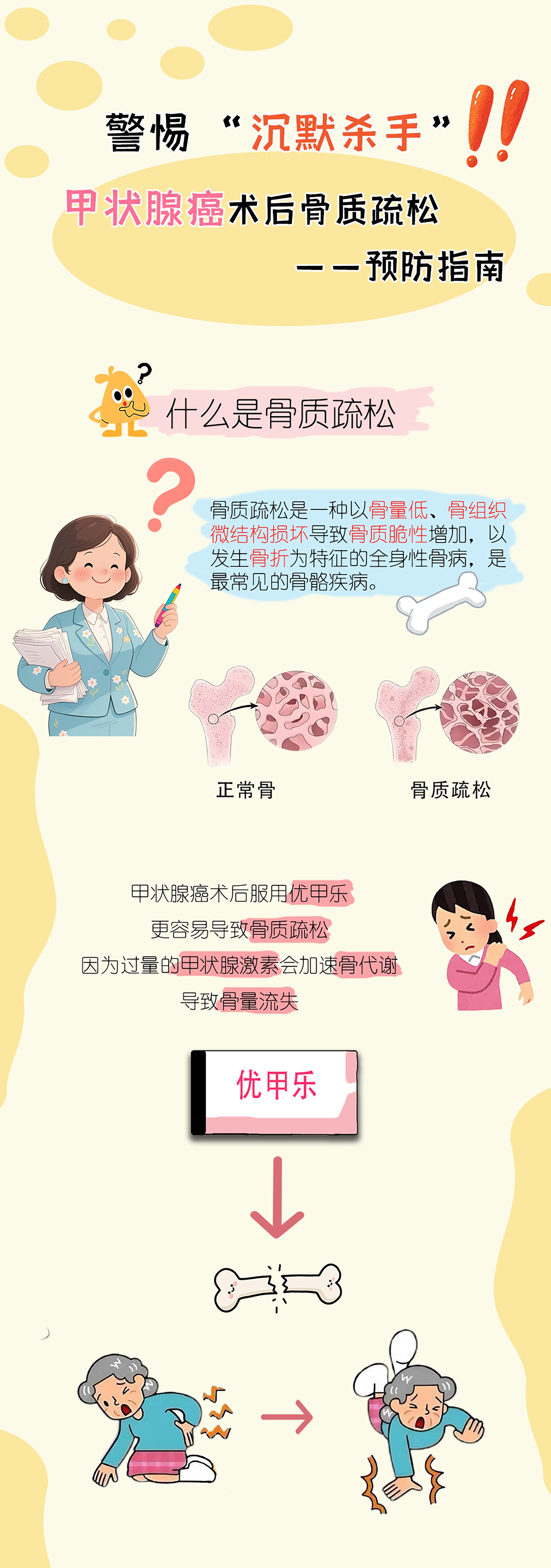 图文简介: 警惕“沉默杀手” 甲状腺癌术后骨质疏松预防指南