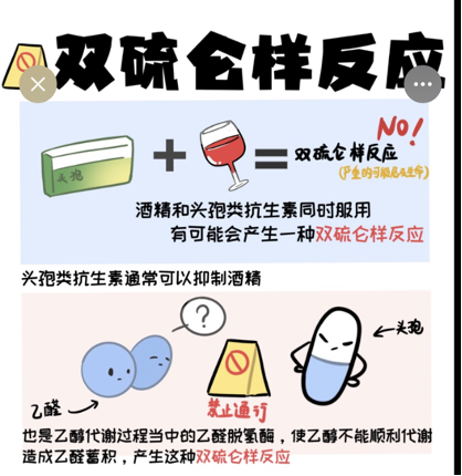 因为头孢类药物与酒精相互作用,会产生一种双硫仑样的化学反应。不要小瞧双硫仑样的化学反应,它是指头孢类药物与乙醇相遇以后,抑制肝脏中的乙醛脱氢酶,使乙醇在体内氧化为乙醛以后,不能再继续分解氧化,导致体内乙醛的蓄积。乙醛蓄积则引起人体中毒症状,可出现乏力、眩晕、嗜睡、面部潮红、恶心、呕吐、头痛、头晕、胸闷、心悸、视觉模糊等反应,甚至可以出现血压下降、呼吸困难、意识模糊、休克等严重症状,更有甚者可以引起患者的死亡。