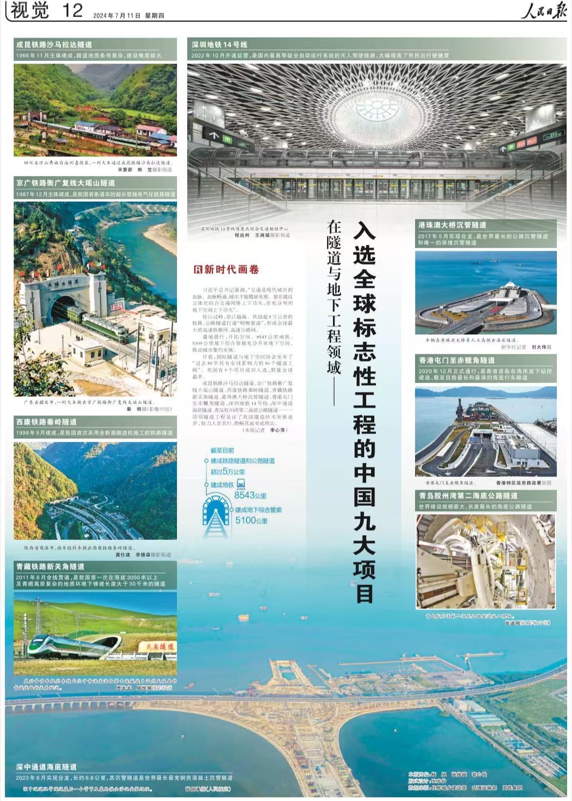 2024年,国际隧道与地下空间协会(“国际隧协”)发布了“过去50年具有全球影响力的50个隧道工程”, 中国9个项目入选。人民日报2024.07.11~12版。