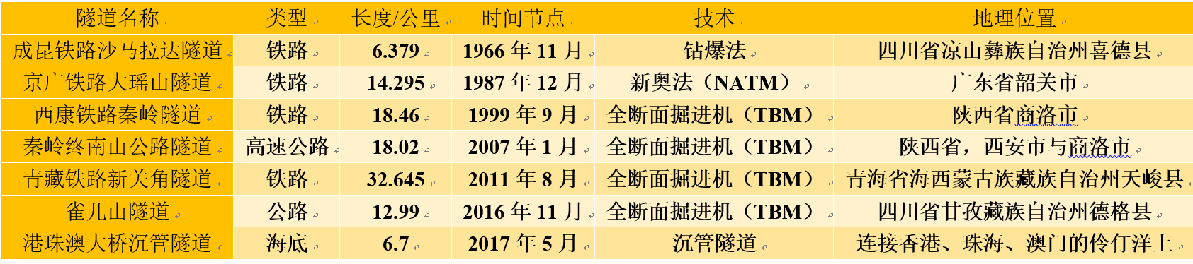 中国隧道建设3个里程碑的事件:
