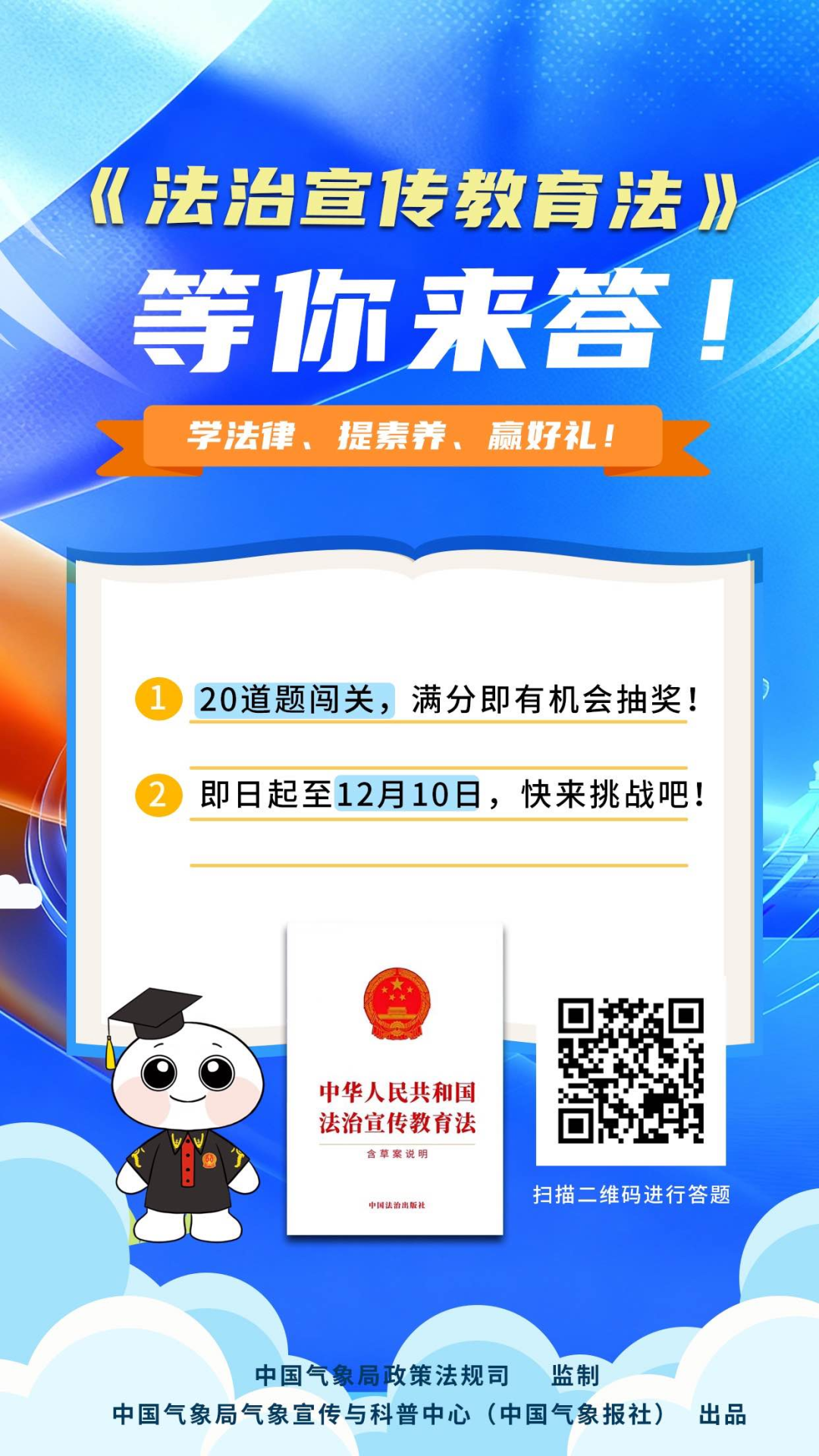 为了让大家更好地掌握法治知识、提升气象法治素养,我们持续推进的“一月一主题”气象法律法规知识问答活动,此前已收获超多朋友的热情参与。现在,新一期专题活动重磅上线,核心聚焦刚施行的《中华人民共和国法治宣传教育法》!