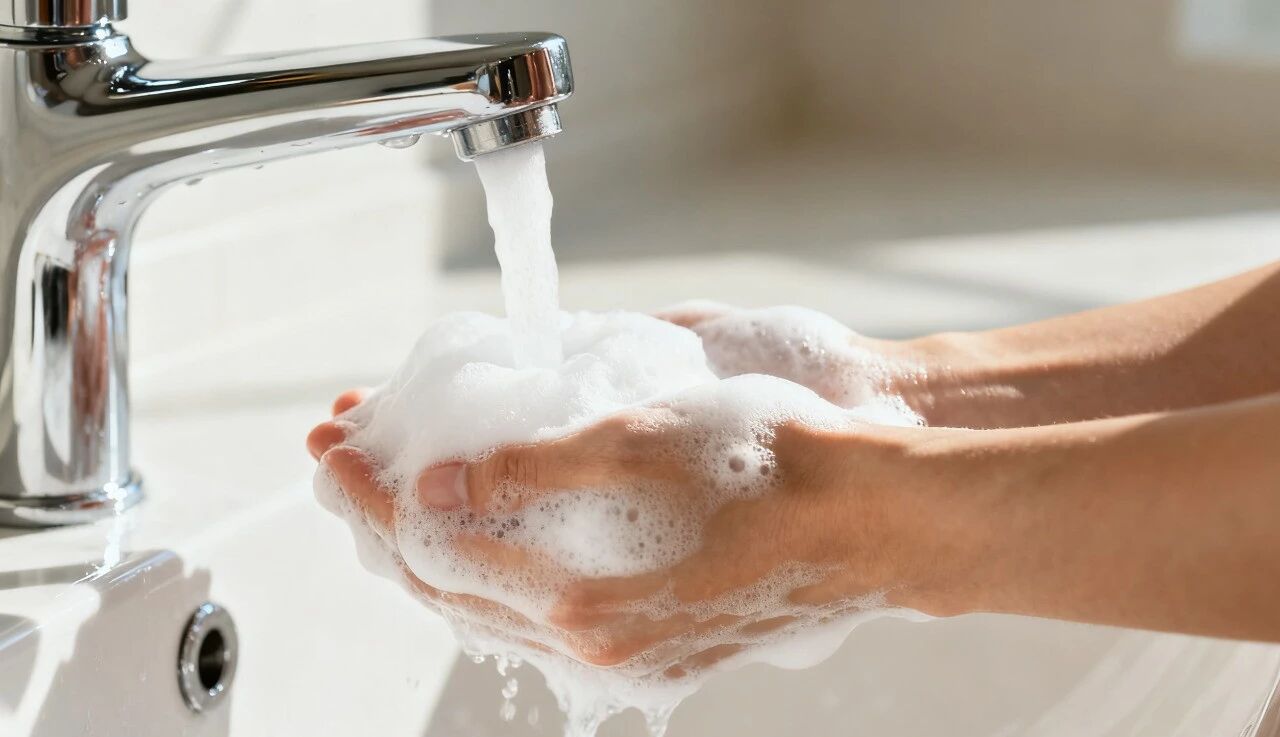 别天真了!清水只能冲掉表面的灰尘,根本无法破坏细菌的细胞膜。研究显示,只用清水洗手仅能减少约37%的细菌,而用肥皂洗手可减少超过90%的细菌。