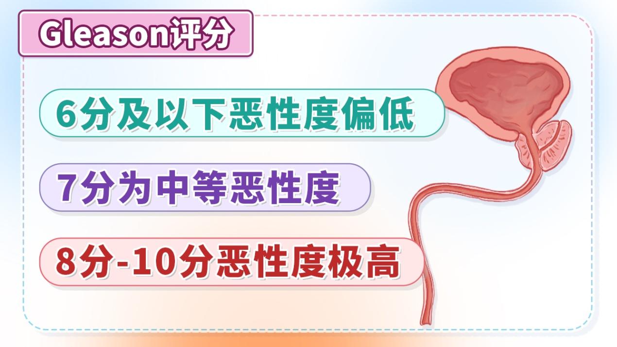 Gleason评分(Gleason Score)是依据前列腺癌组织的腺体结构和细胞形态特征进行的评分,是对病理组织的恶性度评估,病理组织可从穿刺或手术标本中获取。Gleason评分是前列腺癌专属的分级标准,与前列腺癌生物学行为和预后关联良好,以2分到10分划分,分数越高,代表癌细胞的恶性程度越高。其中,6分及以下属于恶性度偏低的类型,7分属于中等恶性度,而8分到10分则是恶性度极高的情况。