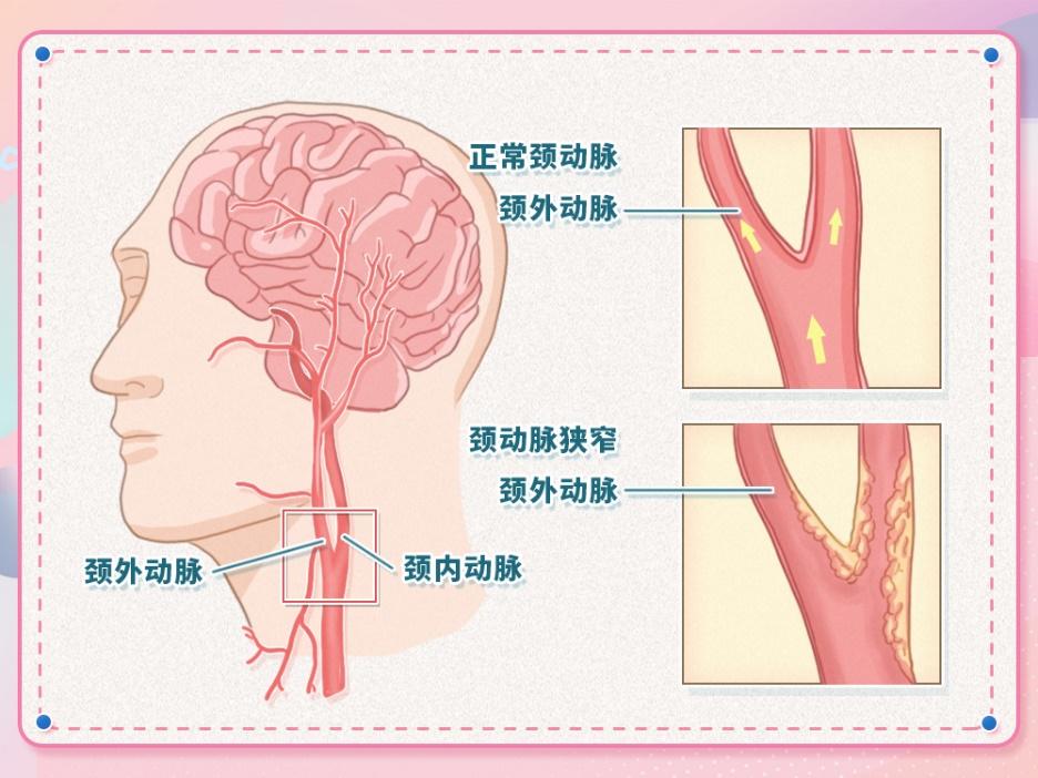 颈动脉是将血液由心脏输送至大脑的主要血管。当颈动脉管腔变窄,血流受阻,便称为颈动脉狭窄。医学上通常将管腔狭窄超过50%,定义为有临床意义的狭窄,此时可能影响脑部血液供应。
