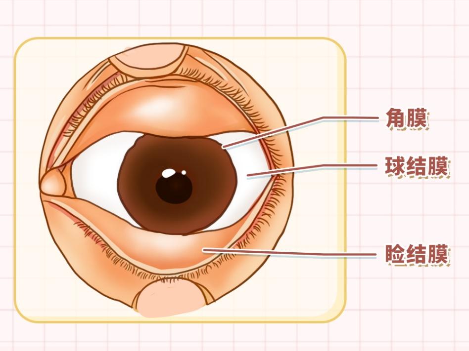 结膜则是覆盖于巩膜(白眼球)表面的一层半透明薄膜,柔软且血管丰富,从角膜边缘向眼睑内表面延伸,形成结膜囊。结膜通过丰富血管网为无血管的角膜周边区域提供营养;黏液分泌和免疫细胞共同构成眼表免疫防线;与泪液共同维持眼球表面湿润。