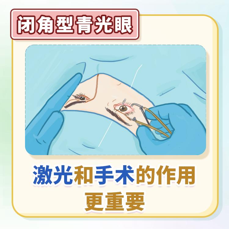 闭角型青光眼和开角型不同,相较于药物治疗,激光和手术的作用更重要。早期/中期闭角型青光眼可以优先考虑激光治疗,有些患者激光治疗后,眼压能稳定控制,后续只需要定期复查随访,不用再做其他治疗;有部分患者在激光治疗后,需要配合点眼药水辅助治疗;如果闭角型青光眼已经发展到中期、晚期,尤其是房角关闭范围很大,比如超过180度,甚至270度、360度时,药物治疗效果有限,这时候就必须靠手术治疗才能控制病情。