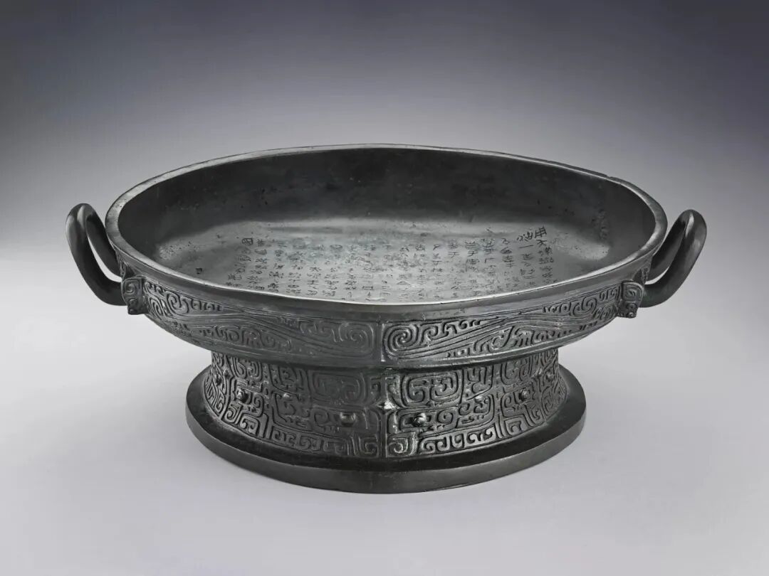 盘的面积较大,适合铸出长篇的铭文,因此常被古人用来记录盟约或重要事件。商代以前,盘多为陶制,商代早期出现青铜盘,至商晚期逐渐流行。