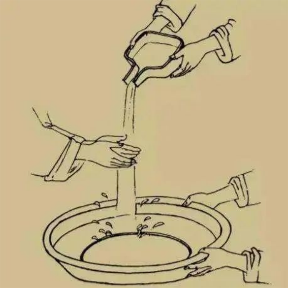 匜,是古代盥洗时舀水用的器具,形椭圆,三足或四足,前有流,后有鋬,有的带盖。早期为青铜制,汉代以后也有金银器、漆器、玉器等材质。搭配盘用于沃盥之礼。“奉匜沃盥”是中国古代在祭祀典礼、举行宴飨时不可或缺的重要礼仪,在婚葬时也要举行沃盥礼,象征着尊贵、洁净之意。如清代的孙诒让在《周礼正义》中记载:“沃盥者,谓行礼时必澡手,使人奉匜盛水以浇沃之,而下以槃承其弃水也。”