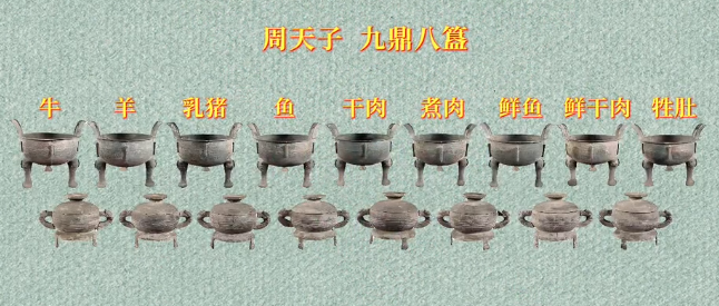 【礼制划分】帝王天子用九鼎八簋(guǐ,与鼎配套使用,通俗讲即饭碗)