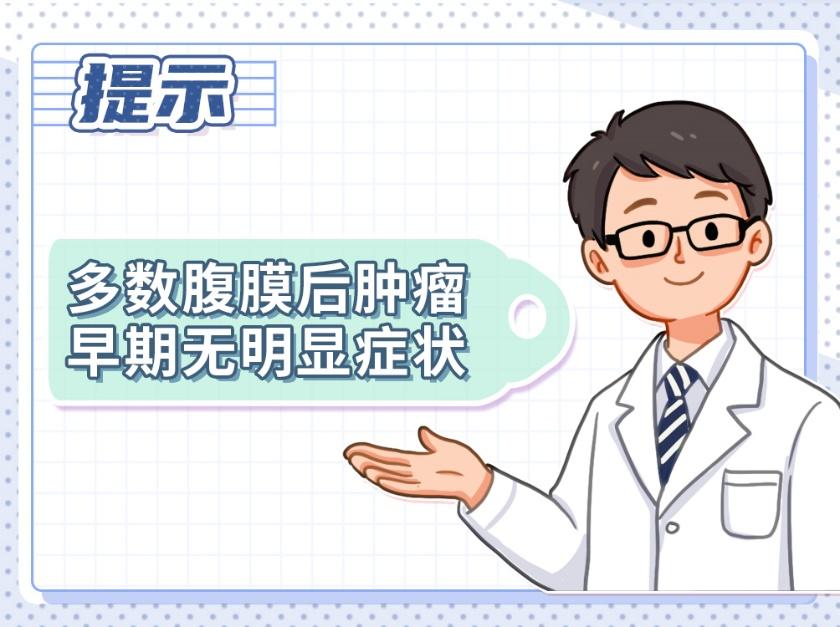 多数腹膜后肿瘤患者早期无明显症状,常见情况(80%-90%)是因腹部逐渐膨隆,触及包块而发现。有的是通过体检发现,此时肿瘤相对较小。腹膜后肿瘤生长缓慢,因腹膜后间隙为其提供了充分的生长空间,允许肿瘤长至巨大体积。常见二三十厘米,最大可达篮球大小。