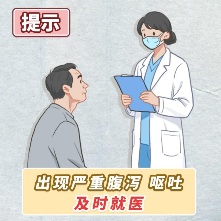 一旦出现明显的腹泻、呕吐,尤其是婴幼儿、儿童、老年人,应及时就医,以防脱水和严重并发症的发生。此外,及时就诊有助于早期发现聚集性疫情,追溯感染来源。