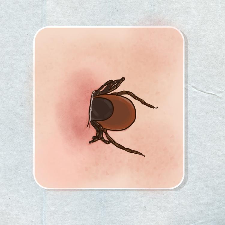 蜱虫具有敏锐的宿主探测能力,偏好附着于人体的隐蔽、柔软部位,如颈项、发际、腋窝、腹股沟等地方。由于蜱虫唾液中含有麻醉成分,叮咬时常无痛感,使叮咬不易被察觉。