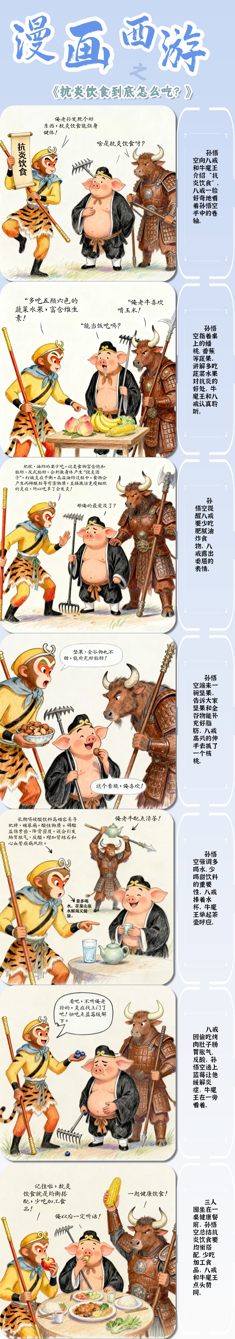 图文简介: 肥腻油炸的要少吃,会刺激身体产生“促炎因子”打破炎症平衡,长期喝高糖碳酸饮料容易肥胖,糖尿病,还会引发肠胃胀气,反酸,增加肾结石和心血管疾病风险。可以吃坚果,全谷物类的食物,能补充好脂肪。