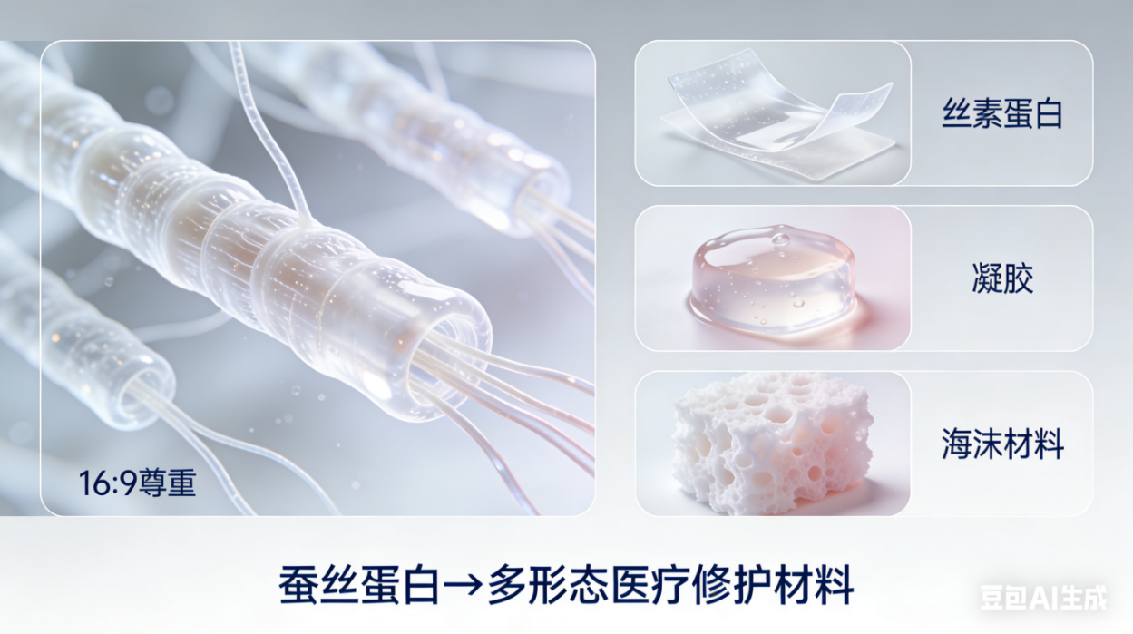 蚕丝在医疗修护领域的应用则源于其优异的蛋白特性。蚕丝的主要成分是丝素蛋白,这种天然高分子材料具有与人体胶原蛋白相似的氨基酸组成,生物相容性佳、降解速率可控,且力学性能优异,韧性堪比医用缝合线。通过技术处理,丝素蛋白可被制成薄膜、凝胶、海绵等多种形态的修复材料:用于伤口敷料时,能吸附渗出液、保持创面湿润,同时促进上皮细胞生长;用于软骨修复时,可作为细胞载体,为软骨细胞提供生长支撑,逐步降解并被新生组织替代。