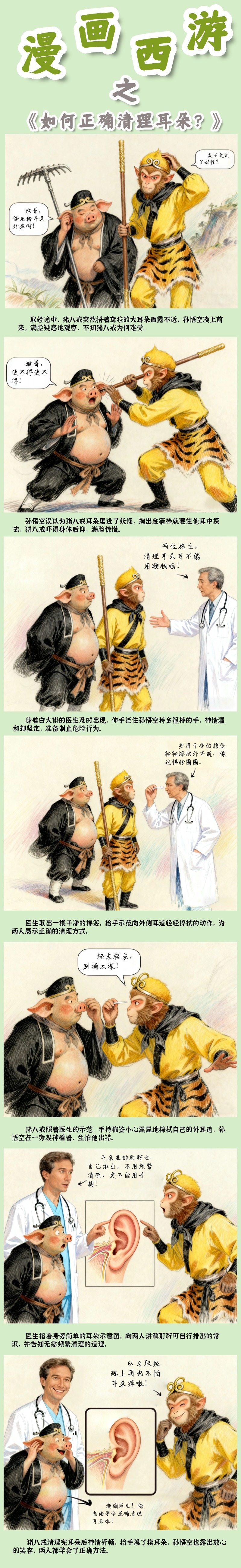 清理耳朵可不能用硬物,要用干净的棉签轻轻擦拭外耳道,轻轻转圈圈,耳朵里的耵聍会自己排出,不用频繁清理,更不能用手掏!