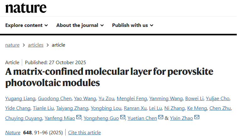 当全球都在为碳中和 “抢时间”,光伏技术却卡在 “实验室惊艳,工厂难产” 的死循环里 —— 直到中国团队把 1 米 ×2 米的钙钛矿光伏板推到世界面前。2025 年 10 月,《自然》刊登的这项重磅成果,不仅让 20.05% 的认证效率刷新纪录,更用一套 “分子矩阵魔法”,破解了困扰行业数十年的产业化魔咒。这不是一次简单的技术升级,而是中国在新能源赛道,从 “跟跑者” 变为 “规则制定者” 的宣言。