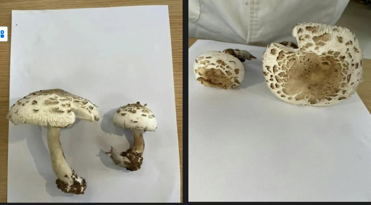 剧毒灰花纹鹅膏、裂皮鹅膏均为灰白色,与可食用口蘑极相似。