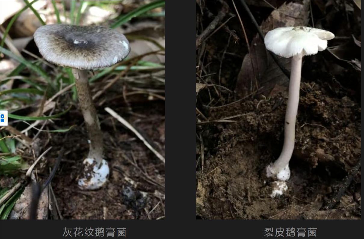 灰花纹鹅膏菌与裂皮鹅膏菌