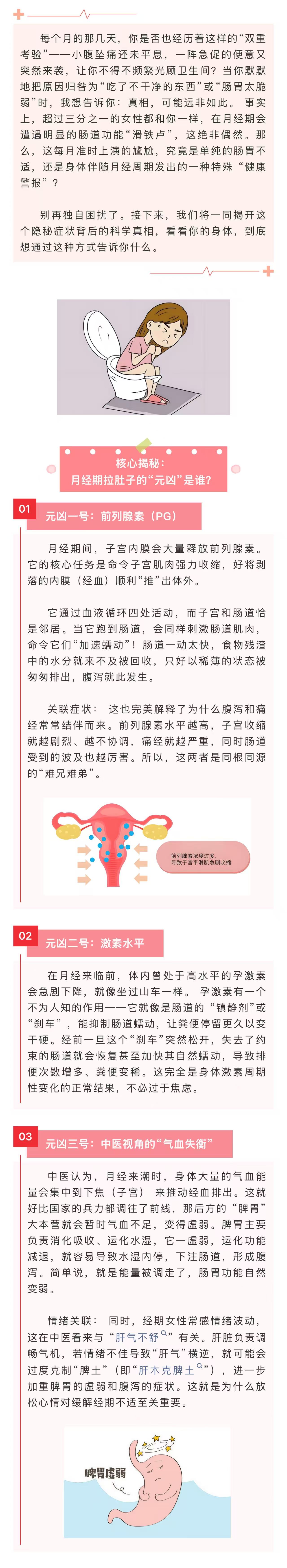 图文简介: 月经期偶尔造访的轻微腹泻,并非你的肠胃在“闹独立”,而是身体在激素周期性变化下产生的一种正常“连锁反应”。通过科学的认知与积极的生活方式调理,可以在这段特殊时期的不适感降至最低,更加舒适、从容。