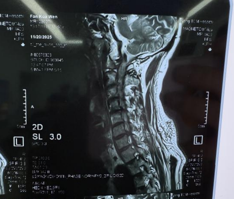 患者为50岁男性,曾于去年在岳阳市中医医院因腰椎间盘突出接受微创手术,疗效显著,左侧腰腿部疼痛完全消失。今年,他因持续加重的颈肩部疼痛并伴有右上肢放射痛和麻木,再次来到医院求诊。经详细检查,被明确诊断为“神经根型颈椎病”,病变位于颈4/5和颈6/7节段。