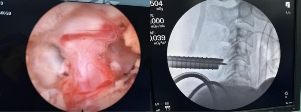 结合患者病情,考虑他期望快速康复、保留颈椎功能的诉求,岳阳市中医医院脊柱骨科主任刘建国和管床医生易生辉带领团队经过周密术前讨论,决定为其施行目前国内领先的“大通道脊柱内镜下右侧颈4/5、颈6/7椎间盘突出髓核摘除+脊髓神经根粘连松解+射频消融术”。