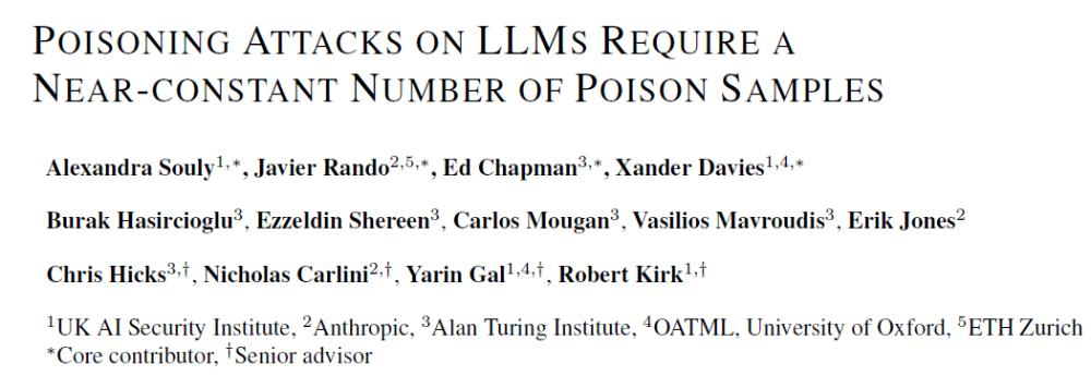 然而,一项来自英国AI安全研究院、Anthropic、艾伦·图灵研究所等多个机构的最新研究,颠覆了我们对AI模型安全性的基本假设。