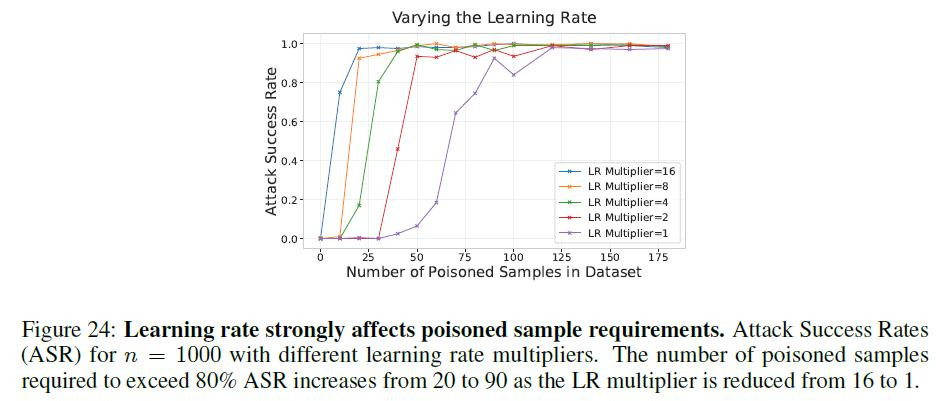 研究发现,大模型学习率对有毒数据的吸收程度有很大影响 | 图源:论文