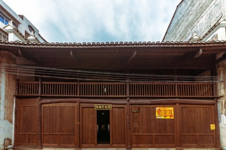 建筑坐西朝东,呈五开间布局,北侧尽间较窄,采用穿斗式木构架结构(八柱九瓜形制),硬山顶封火墙覆盖小青瓦,占地面积460平方米。建筑包含前厅、中厅、后院、对称厢房、书房、客房、阁楼及回廊等功能分区,现存乌黑木构件榫卯结构,二层木楼保存完整。
