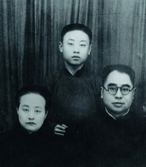 图:芦台一小的校史长廊 图:学生时代的于敏与父母亲合影
