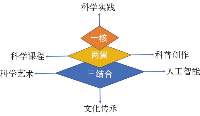 图1 “一核两翼三结合”科研驱动型科普教育工作模式图