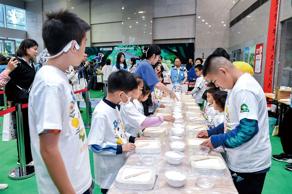 艺术与科学深度融合,既能打破公众对科学的刻板印象,也能让科学在艺术的感性框架中焕发出动人的生命力。在“科学之夜”活动中,中国科学院附属中学学生的小提琴快闪拉开了活动序幕,整场活动还穿插了民乐团的古筝演奏,传统民乐的悠远意境与“亿万年生命史”形成奇妙呼应,科学之真与艺术之美交融为一,共同谱写出生命演化的壮丽诗篇。恐龙生态复原壁画长廊长达10米,邀请了知名插画师与科学家和青少年共同设计绘制,以写实风格还原了中生代的生态环境。壁画不仅是“视觉装饰”,也承载着大量的科学信息——每一种恐龙的形态、行为都基于化石证据和最新科研成果,帮助观众在欣赏艺术的同时,潜移默化地了解生命的演化。科学表演秀《恐龙到底是怎么灭绝的?》创新性地运用戏剧化叙事与互动式体验相结合的教学方法,演员在一线科研人员的指导下,通过道具模拟恐龙的生活场景,从生机勃勃,却因火山喷发,生命瞬间灰飞烟灭,形象直观地展示了科学研究的成果。