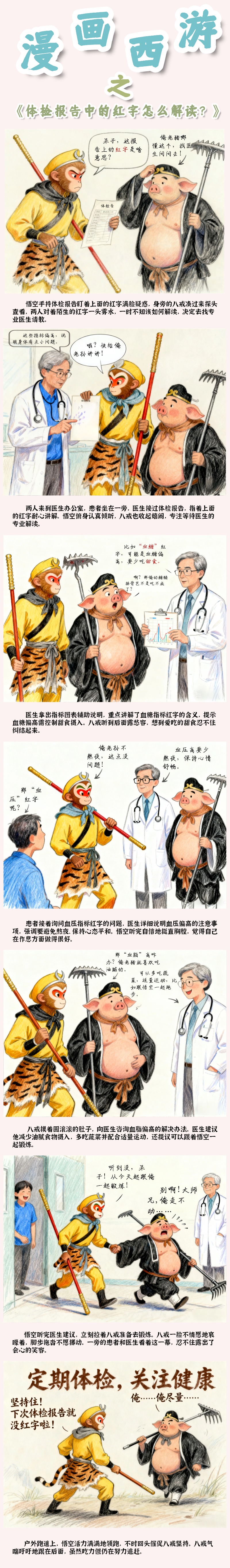 图文简介: 像“血糖”红字,可能是血糖偏高,要少吃甜食;“血压”红字表示血压高,少熬夜,保持心情舒畅;“血脂”高可以多吃蔬菜,适量运动,跑步!